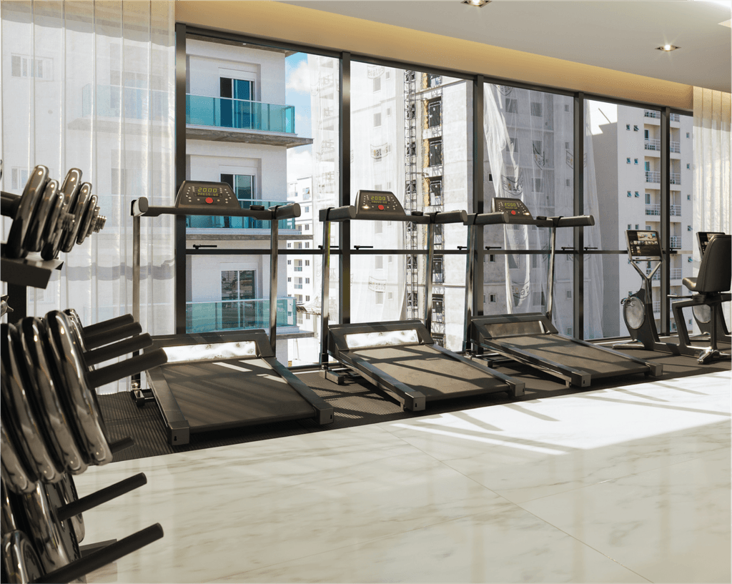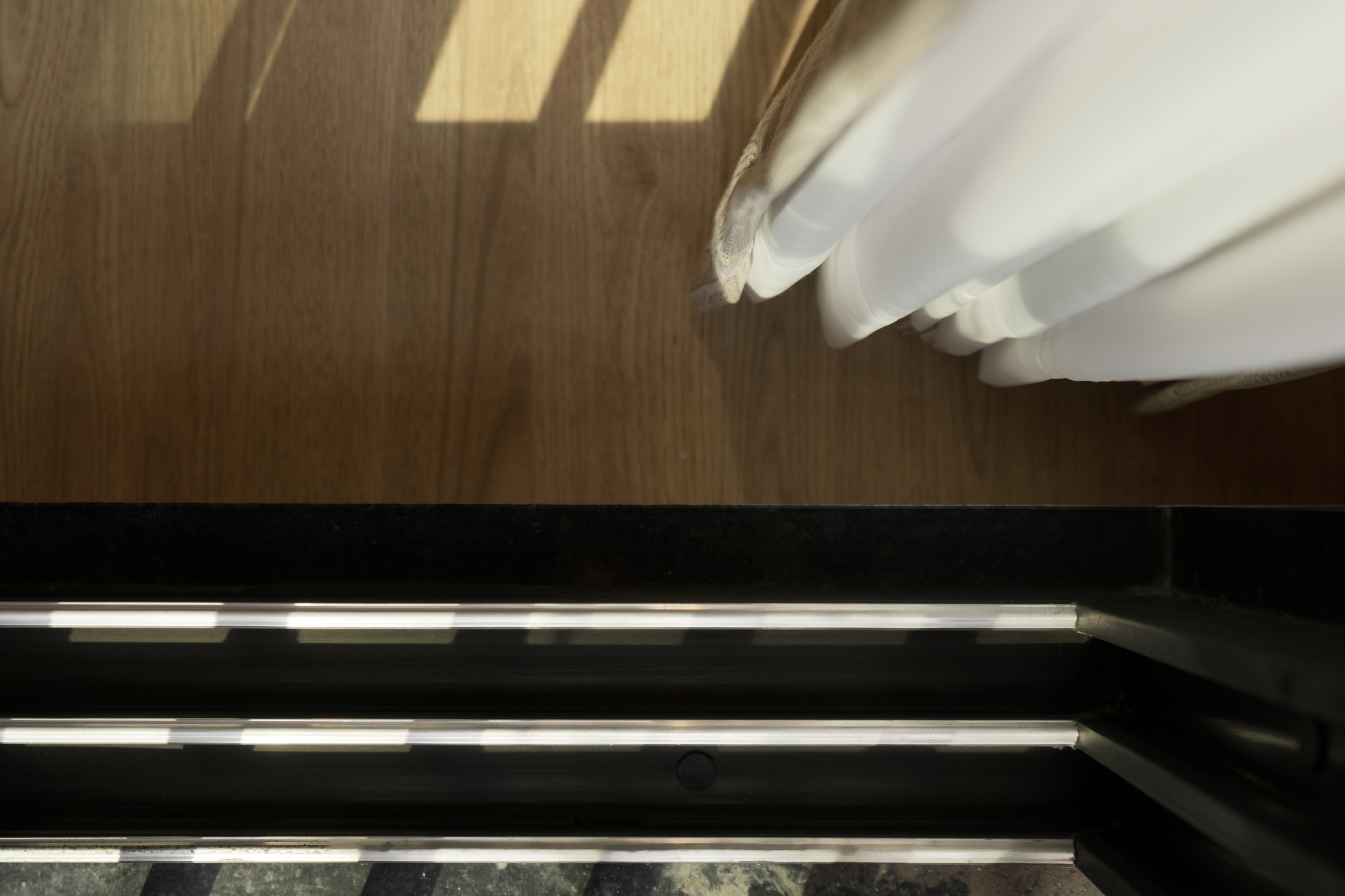 Large premium windows with acoustic insulation, UV- and heat-reducing glass by Modi Guardian, and dust-resistant systems.