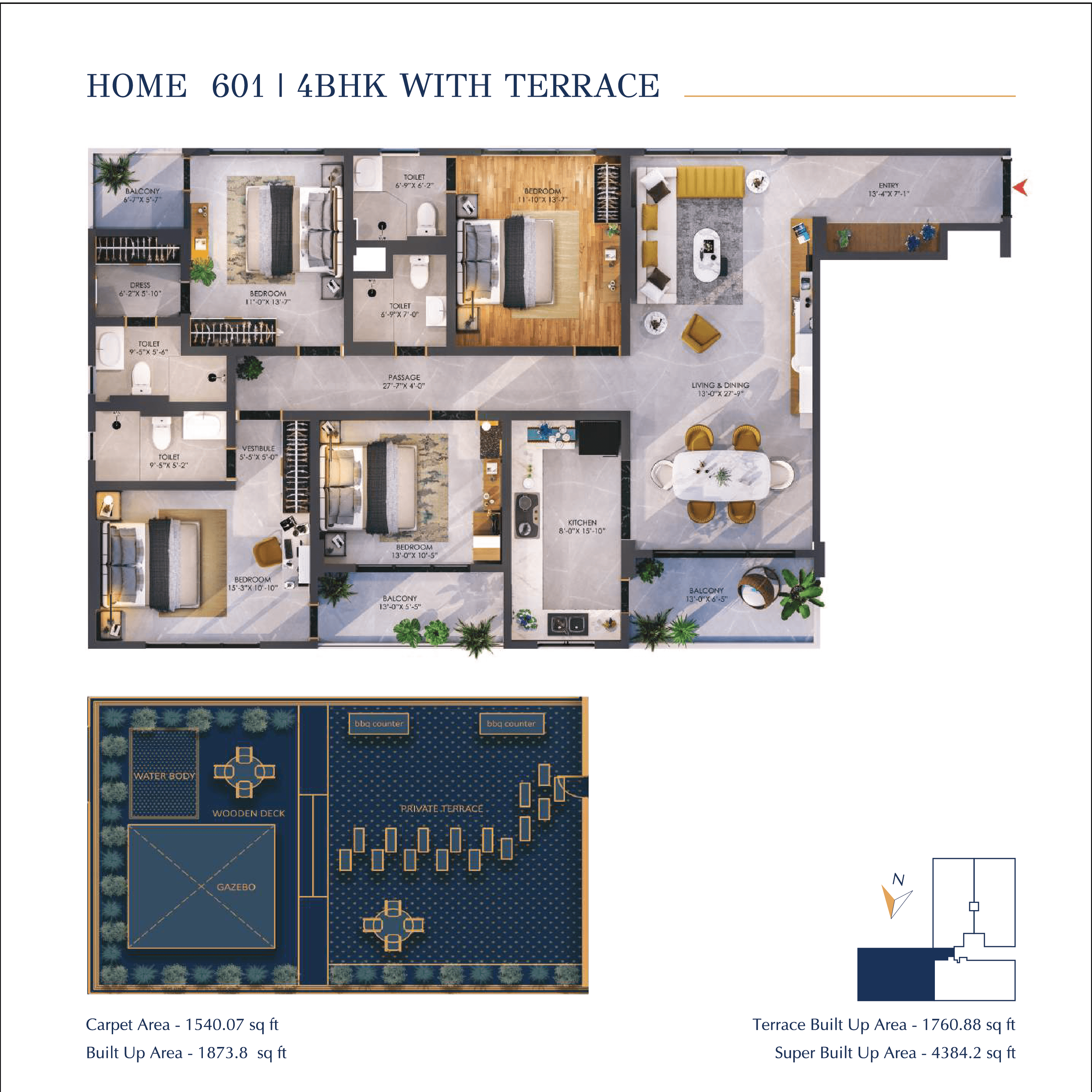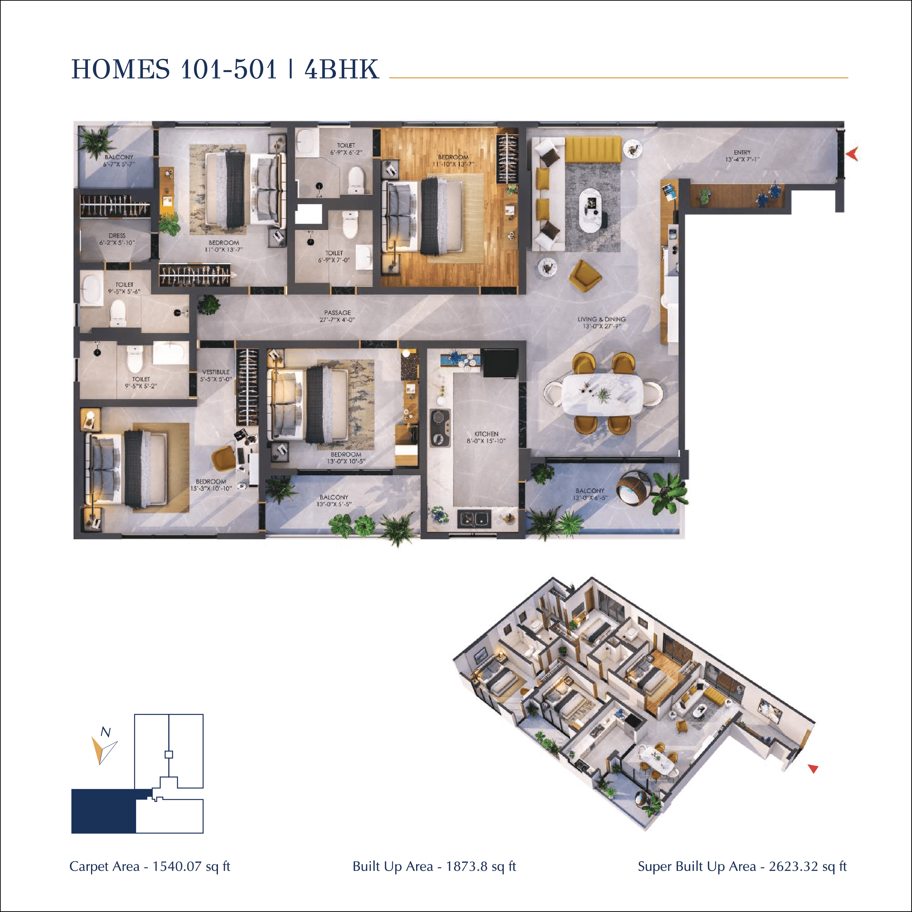 Homes feature a private entry foyer, acoustic bedroom doors, 9’ designer ceilings, IoT-ready smart switches, separate TV points, and Cat 6 wiring in all bedrooms.